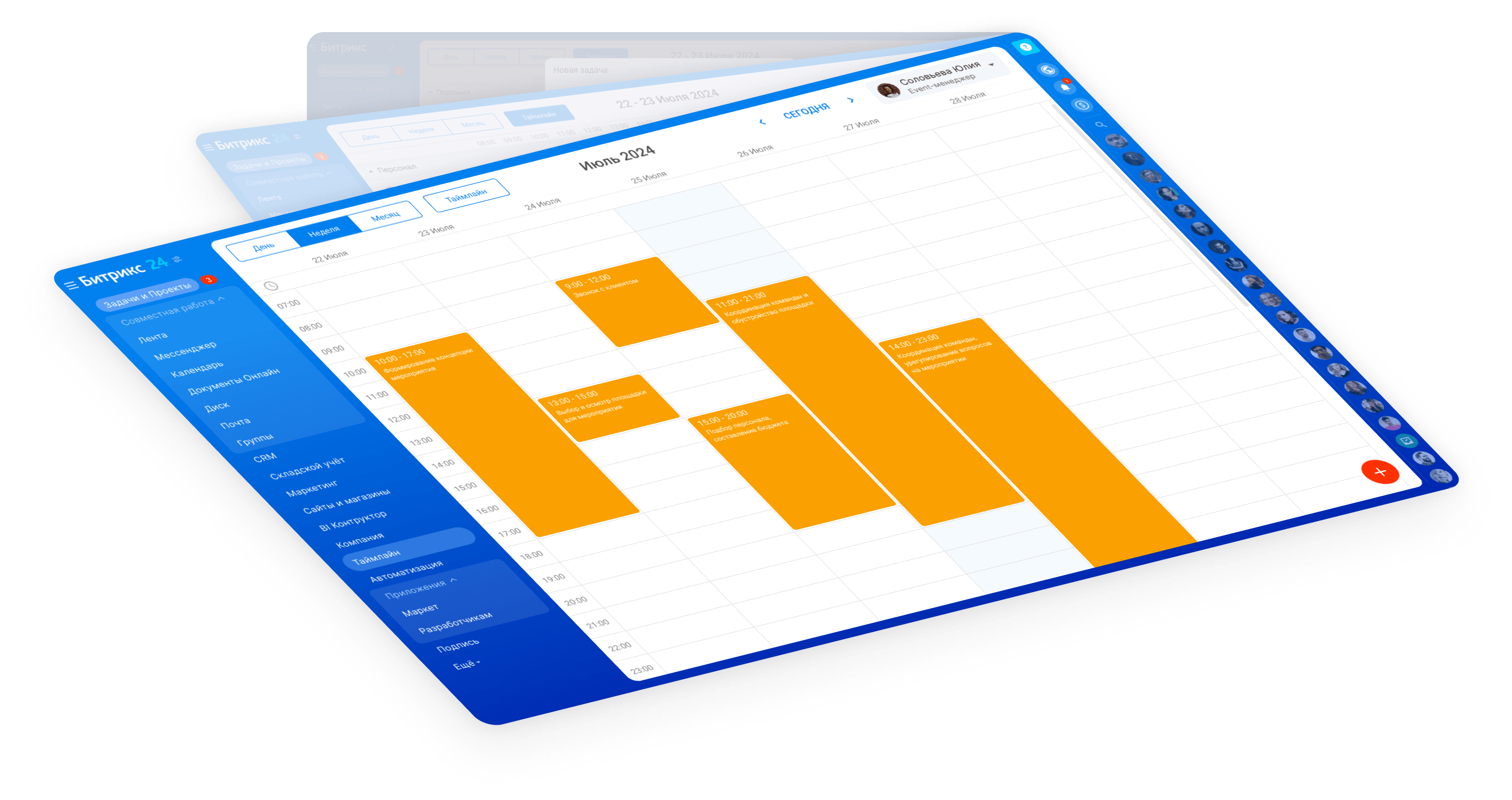 Создать интуитивно-понятное приложение для системы Bitrix, которое поможет сотрудникам различных агентств эффективно выполнять поставленные задачи, а также легко распределять время и рабочую нагрузку. Идея заключалась в том, чтобы система помогла эффективно визуализировать это распределение.